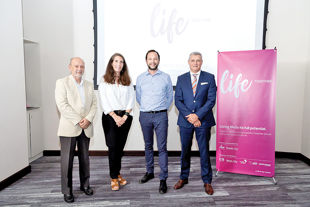 De g.à.d. Dr François Tadebois, Medical Director de la Clinique Bon Pasteur, Géraldine Jauffret, CEO de Life Together, Nicolas Tadebois, Manager Opérations et Projets chez Clinique Bon Pasteur et Arnaud Lagesse, CEO du Groupe IBL