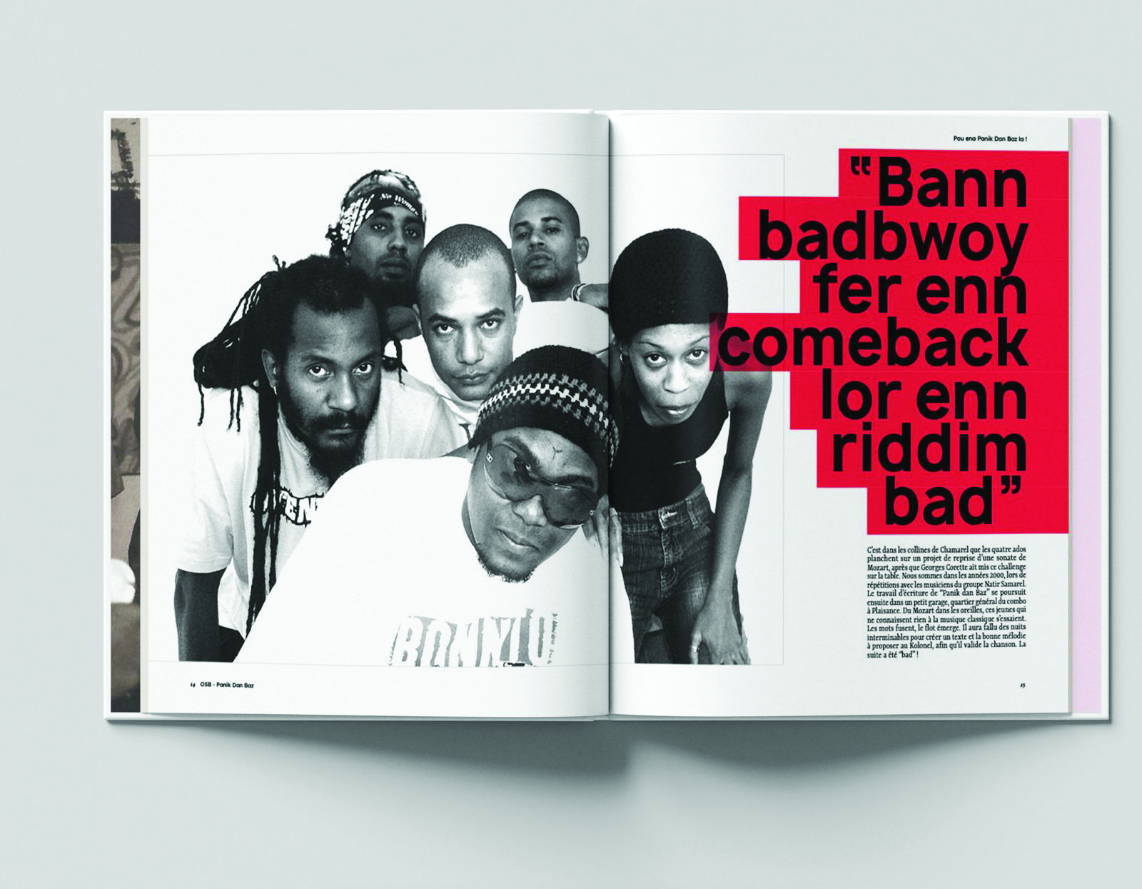 Lorsqu’il s’est embarqué dans l’écriture de Panik dan baz, Stephan Rezannah savait qu’il ne s’agissait pas seulement de faire la bio d’un groupe de raggamuffin, mais de décrire LE phénomène OSB, qui incarne l’affirmation de la culture urbaine mauricienne. Ce groupe en a été la force centrifuge, qui unit et qui rassemble, avec sa langue, ses danses, ses codes visuels et graffitis, sa marque et son Real Ghetto Business, Live N Direk Entertainment.