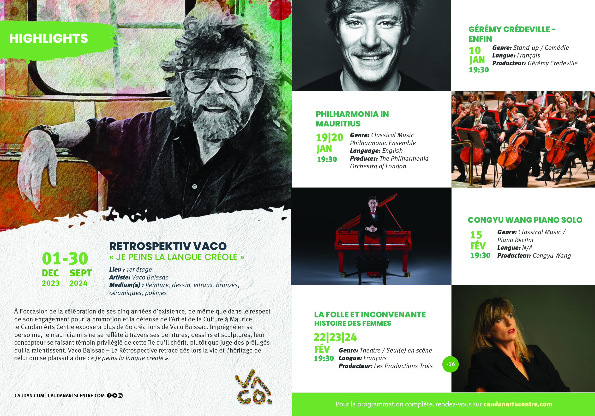 Non catégorisé Caudan Arts Centre – PROGRAMMING DECEMBER 2023 – JANUARY – FEBRUARY 2024 By La Rédaction de La Gazette - 8 December 2023 0 326 FacebookTwitterPinterestWhatsApp RELATED ARTICLESMORE FROM AUTHOR Candles against HIV Steam for relief Dr Nad Narrainen-Poullé, pelvic health and menopause Keïvan Cadinouche, Born in Moris ! Mauritius Telecom, a sustainable, global commitment LEAVE A REPLY Cancel reply Please enter your comment! Please enter your name here You have entered an incorrect email address! Please enter your email address here Save my name, email, and website in this browser for the next time I comment. Δ