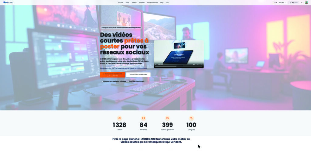 Pour une entreprise, publier régulièrement sur les réseaux sociaux est devenu essentiel, mais produire des vidéos demande du temps. IAONBOARD automatise la création, sans tournage ni montage, de vidéos courtes prêtes à diffuser, à partir d’une idée.