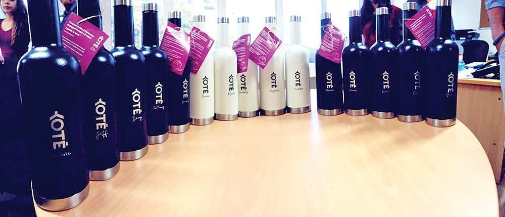 Pour réaffirmer sa position, Koté Vins a dernièrement fait une refonte de son identité visuelle avec un tout nouveau design dans l’air du temps. « Il s’inscrit dans un tout nouvel univers graphique plus moderne et dynamique, visible dès aujourd’hui sur nos différents canaux de communication dont bien-sûr le site internet. L’idée d’adopter un nouveau logo a séduit toute l’équipe, nous avions le désir d’en créer un plus en phase avec notre évolution, c’est chose faite ! » détaille Elodie. Koté Vins a aussi voulu marquer son retour en offrant à son personnel des gourdes isotherme personnalisées pour réduire la consommation de bouteilles en plastique. « Le bien-être de la planète nous concerne tous, nous avons pensé que ce petit geste pour notre personnel était le bienvenu surtout après une crise sans précédent qui nous a tous permis de revoir notre façon de penser le monde » renchérit Elodie. Bonne continuation Koté Vins !