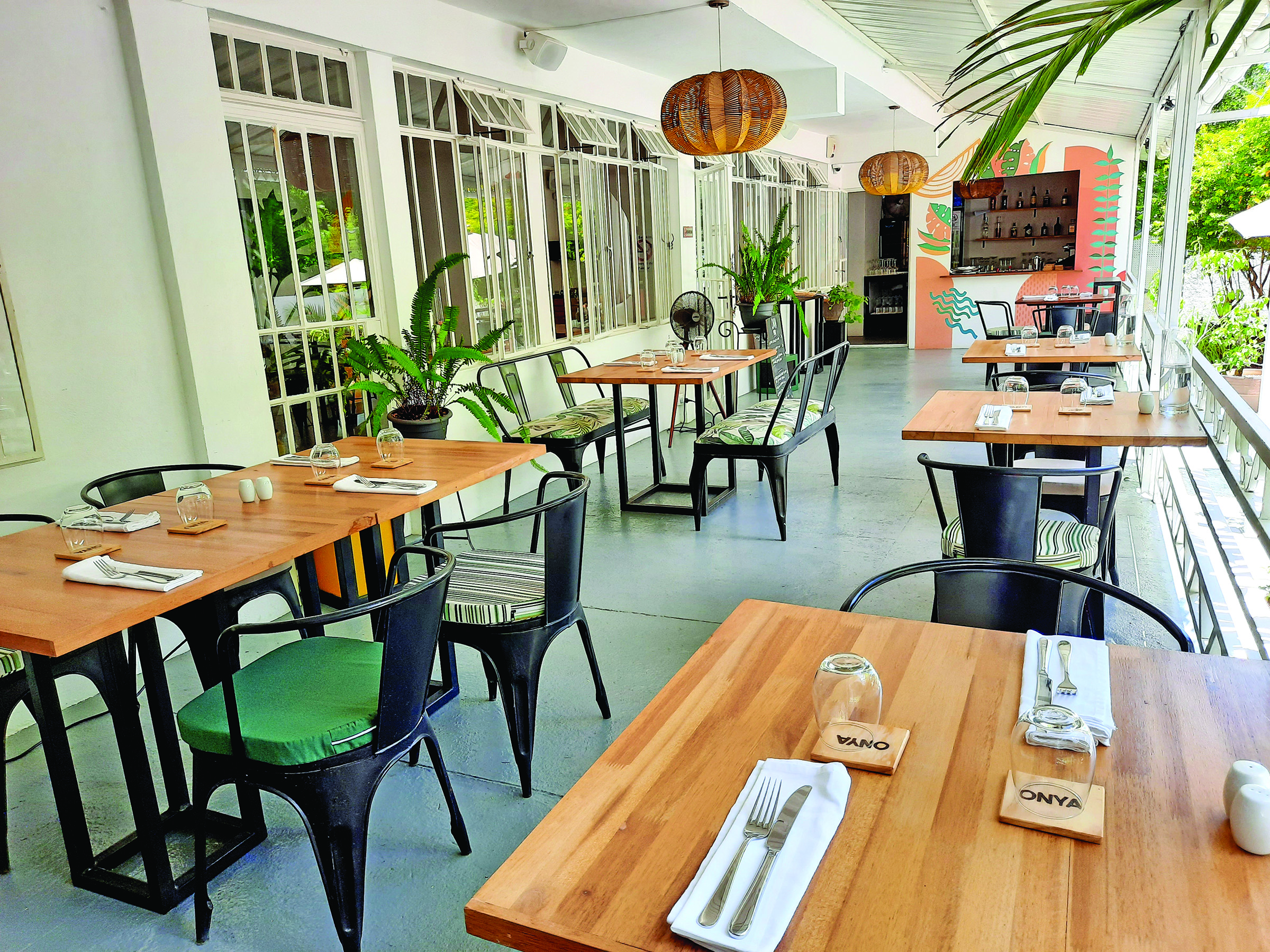 Cette viande rarement proposée à la table d’un restaurant est d’ailleurs la recette signature d’ONYA, sous forme de cuisse servie pour 3 à 4 personnes. Valoriser les produits locaux certes, mais en proposant une cuisine fusion, travaillée et non traditionnelle, tel est le concept de l’établissement. Pour la savourer, on peut opter pour le menu du midi sur la base d’un ticket moyen de Rs 500 ou la carte enrichie de 3 à 4 suggestions supplémentaires à l’ardoise pour le dîner, pour environ Rs 1000. Autre option conviviale, ONYA propose un menu dégustation de 5 plats à partager entre amis, à raison de Rs 1050 par personne.