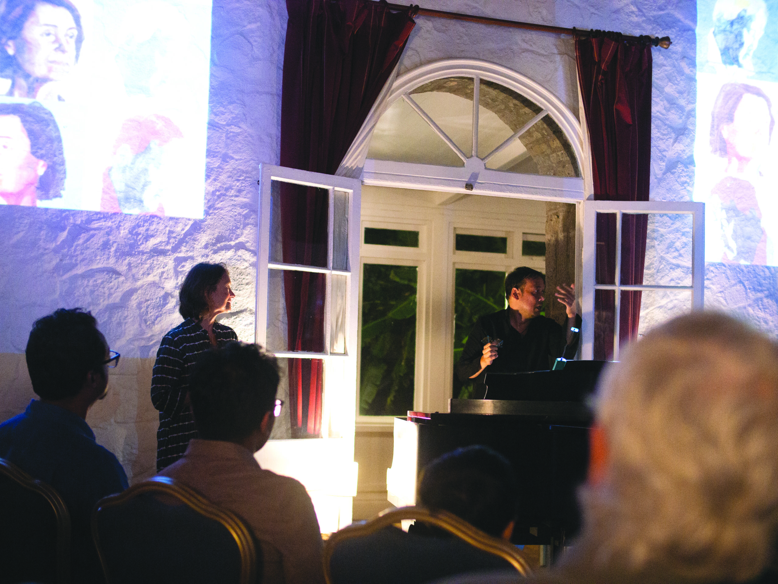 L’artiste Alix Le Juge et le pianiste Kenneth Babajie ont invité le public à vivre une expérience synesthésique le 7 février dernier, au salon de l’Étoile, au milieu des jardins d’Eureka. Projetées sur les murs du pavillon, des images abstraites ou figuratives sans cesse en devenir accompagnaient et interprétaient visuellement le déroulé de morceaux de Cage, Messiaen, Ligeti, etc. Dominique Bellier