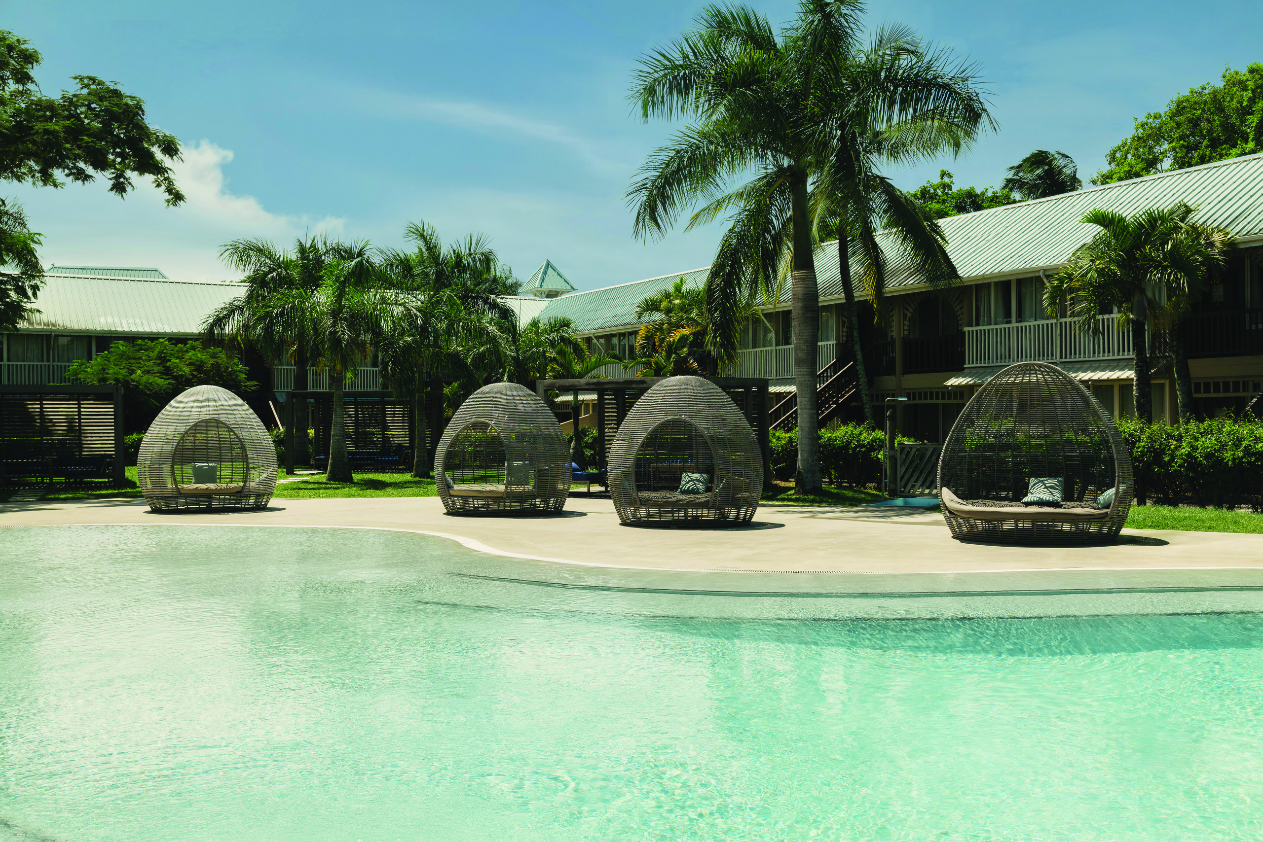 11h30 au Club Med de la Pointe, les amateurs d’aquagym s’ébattent en musique dans la piscine principale, tête levée vers le coach, qui montre les mouvements à accomplir. Tout autour, vacanciers et visiteurs d’un jour vont et viennent, se prélassent dans les transats, cocktail de fruits en main. Au même moment, à la piscine familiale, une fierté de l’endroit pour sa sérénité et son design original, des bambins s’initient tout doucement aux jeux d’eau avec leurs parents. S’étalant sur 12 hectares, le resort est suffisamment spacieux pour satisfaire les différentes attentes de clients trop heureux d’oublier la voiture pour flâner sur la grande plage bordée de palmiers, se promener dans les jardins verdoyants et jouir d’une profusion d’activités.