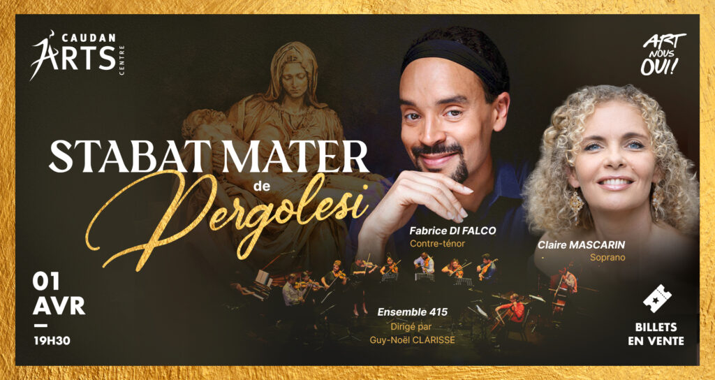Composé au début du XVIIIe siècle, le Stabat Mater de Pergolèse demeure l’une des pages les plus bouleversantes du répertoire sacré baroque. Cette méditation musicale sur la douleur maternelle trouve une résonance particulière pendant la semaine sainte, moment liturgique où se commémore la Passion du Christ. L’alliance des voix de Claire Mascarin et Fabrice Di Falco, soutenues par la finesse de l’Ensemble 415, promet une interprétation intimiste et intense de cette œuvre intemporelle.